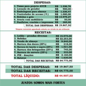 A iniciativa contou com ampla mobilização comunitária e resultou na arrecadação de R$ 44.907,50 (quarenta e quatro mil, novecentos e sete reais e cinquenta centavos), além de centenas de quilos de alimentos. Os recursos financeiros e as doações serão integralmente utilizados no preparo de refeições e no custeio das atividades hospitalares voltadas aos pacientes internados.